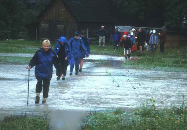 It is rather too deep for comfort! Wet feet are certain.
