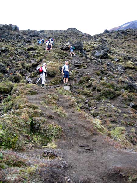 Tongariro Crossing Climbing slopes of old scoria