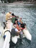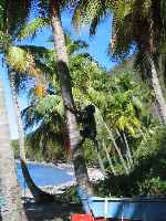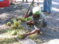 Once ashore, we had a local man who went up a tree to pick coconuts for us.