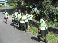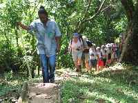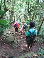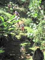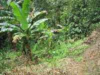 We walked up a forested valley, some parts of which had been planted with bananas.