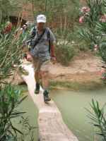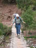 Crossing the footbridge near the Hotel Vieux Chateau.
