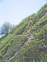 Rosemarie and the ibex meet near the ladder.