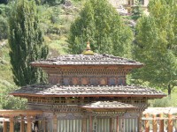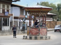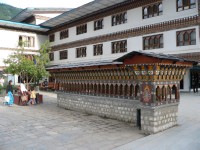 On leaving the Tashi Chodzong we went to a souvenir shop and finally walked back along the main street to our hotel. We were beginning to get used to the surroundings of the hotel, which are a formal square with several sets of prayer wheels sharing the space with an exhibition of heavy trucks for sale!