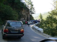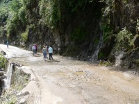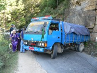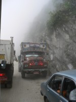 Today we headed for the Indian border at Phuntsholing. Despite the short distance it took us nearly all day. Mostly just slow speed on the narrow road although the two pictures show a brief blockage caused by a lorry. Apparently the brakes failed and the lorry started to run backwards. The driver opted to steer into the rock wall. The other side of the road offered guaranteed death!