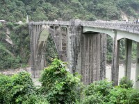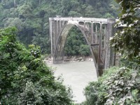 After driving through the hot and low-lying plains we began to climb again. We crossed the Coronation Bridge (George VI) in West Bengal where it crosses the Teesta River at its confluence with the Rangeet River.