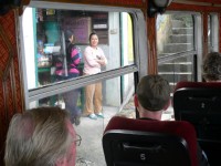 The journey had an odd feel to it, as the railway passes through the narrow streets of the town. In a few places there wasn't even clearance for passers-by between the train and the serving counters of the shops. (Mostly the clearance was about a metre)