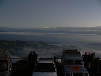 Up at 3:30 today to drive to the top of Tiger Hill in the dark. There we watched the dawn break and the distant mountains come into sight with the first light on them.