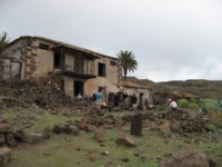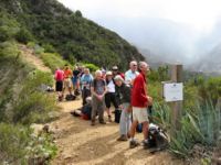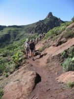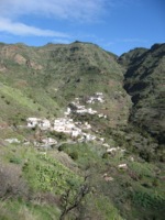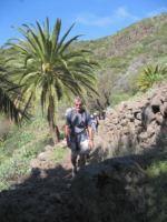The walk continued down a ridge to reach the minibus waiting for us. Part of the group returned to the hotel and eight of us continued the walk, zigzagging through abandoned terraces and the remains of an old road across a steep cliff. The return to the hotel on foot took us back via Playa de Santiago. We arrived there to a loud sound of children singing and found a stage had been set up near the beach and carefully-costumed children where doing their turns while watched by parents - many in elaborate costumes themselves. The walk today totalled 21 km.