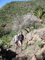 All the paths today were attractive and the views spectacular. Nothing at all like the bland initial appearance of the island. We were seeing date palms and fruit trees in bloom today.