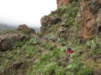 We then began a descent into one of the barrancas (deep ravines leading to the sea). Now we were on spectacular ground with steep cliffs partly covered in plants and bearing abandoned terraces in many places. The spectacular nature of the walk continued all the way down
