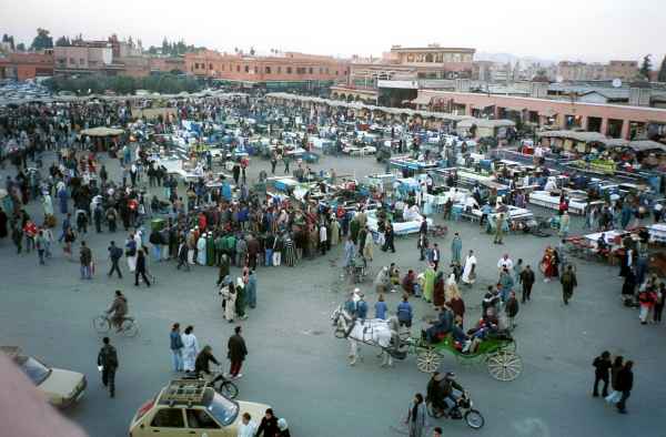 The Djemaa El Fna as the first of the evening food stalls begin to move in.