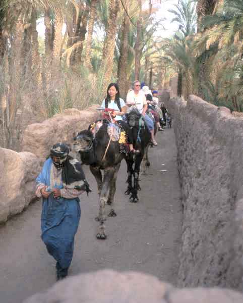Riding camels along walled paths