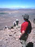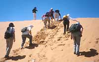 We stagger up the steep sand...