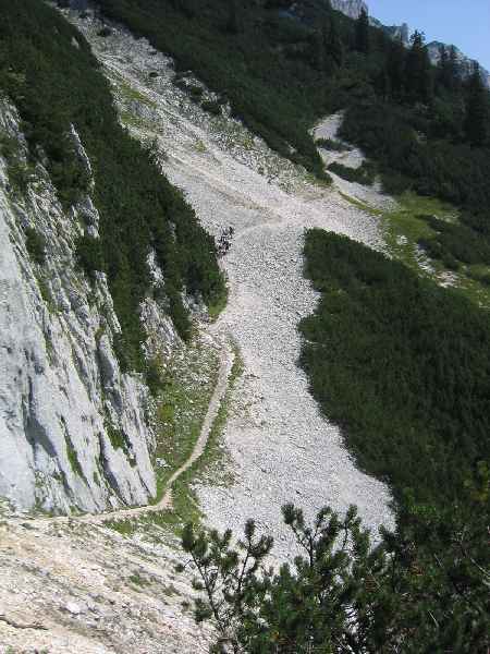 A scree crossing on the Höhenweg to the Vorderkaiserfeldenhütte