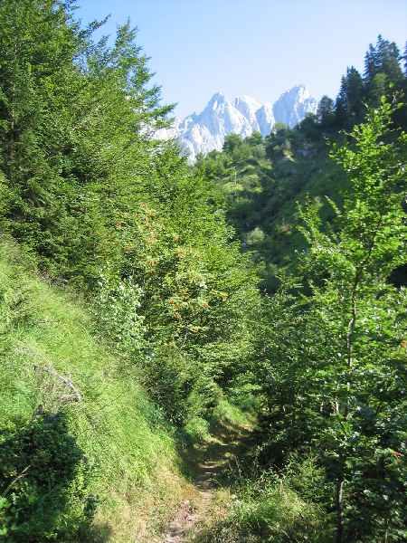 Mostly we traversed paths in thick woods sheltered from the sun. Breaks gave mountain views.