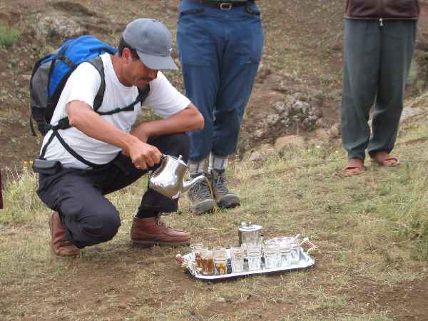 A local village headman treated us us mint tea. Abdul pours the tea.