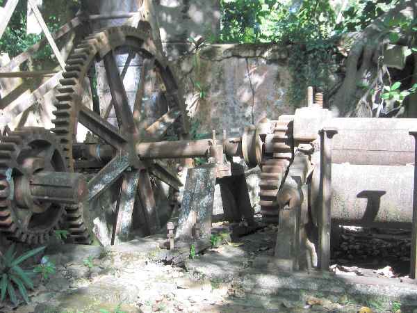 Gears connecting waterwheel and cane-crusher